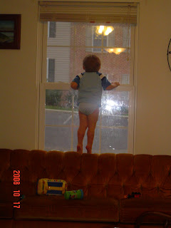 We tried to get Aidan to come with Erica to the cat to get a picture. He had no desire to leave grandma's side. The cat did scare him a little. There is no picture of him in a costume cause he doesn't have one. He's not gonna go trick-or-treating since there are too many things he can't eat, that would be just cruel.